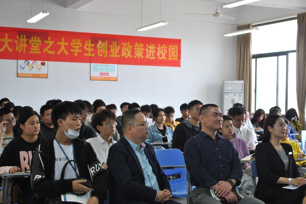 4月21日下午,萧山区留学人员(大学生)创业管理服务中心副主任詹文斌一行莅临我校调研指导大学生创业工作,并举办“创业政策进校园宣讲会”。学工部负责人、大学生创业园相关老师以及飞翔班学生、部分创业园入驻项目负责人、就业创业协会学生、有创业意向的学生等60余人参加了此次宣讲会。