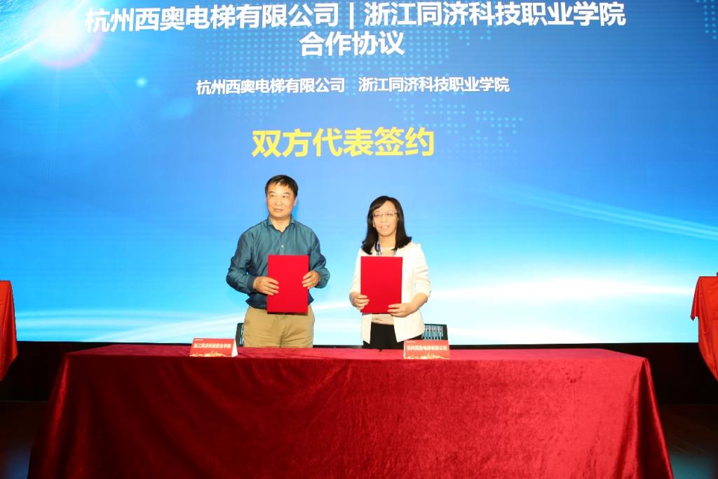 杭州西奥电梯是一家行业领先的现代化综合型电梯企业。从2004年成立至今,每年都保持高速增长,目前已成为中国电梯行业第一民族品牌。乔司职高是一所具有悠久办学历史、在省市职教界都有一定影响的教育局直属公办高中学校,是我校五年一贯制联合培养单位。我校与乔司职高将与西奥电梯协同开展现代学徒制的试点改革,共同创建“西奥五年一贯制现代学徒制试点”班级。