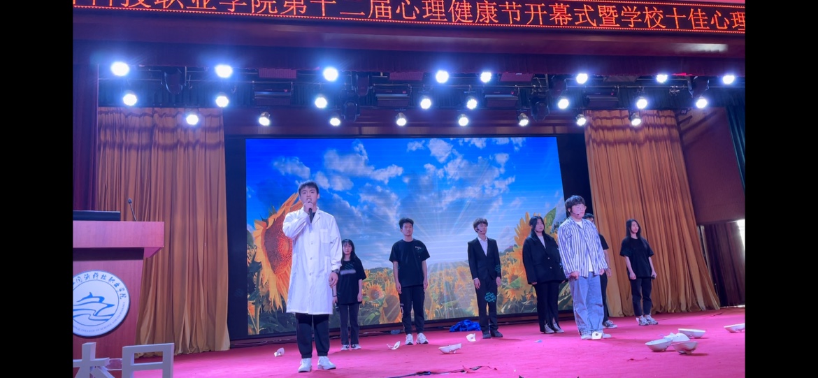 开幕式上,建筑工程学院阳光心理站成员倾情表演的心理情景剧“蓝气球”,生动演绎了主人公在经历了疾病困扰、朋友忽视、亲人不解后最终重获新生的故事。该剧丰富地展示了抑郁症一些显性、隐性特征,引导大家正视大学生抑郁症,向在场师生观众宣传如何辨别“谁是那个微笑的抑郁症患者”,并给予他们理解和帮助。随后学校大学生心理健康指导中心李朝晖老师介绍了第12届大学生心理健康节的活动安排,学院朋辈心理辅导社汤巧玲同学向全校师生发出了关爱自我、了解自我、接纳自我的倡议。