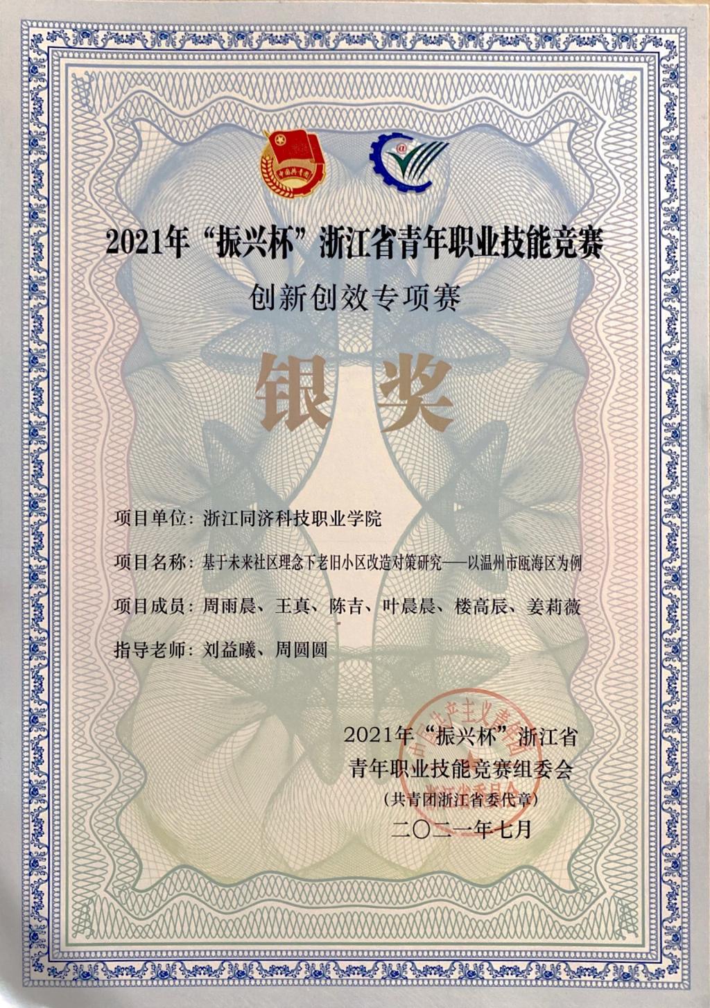我校学子荣获2021年“振兴杯”浙江省青年职业技能竞赛银奖