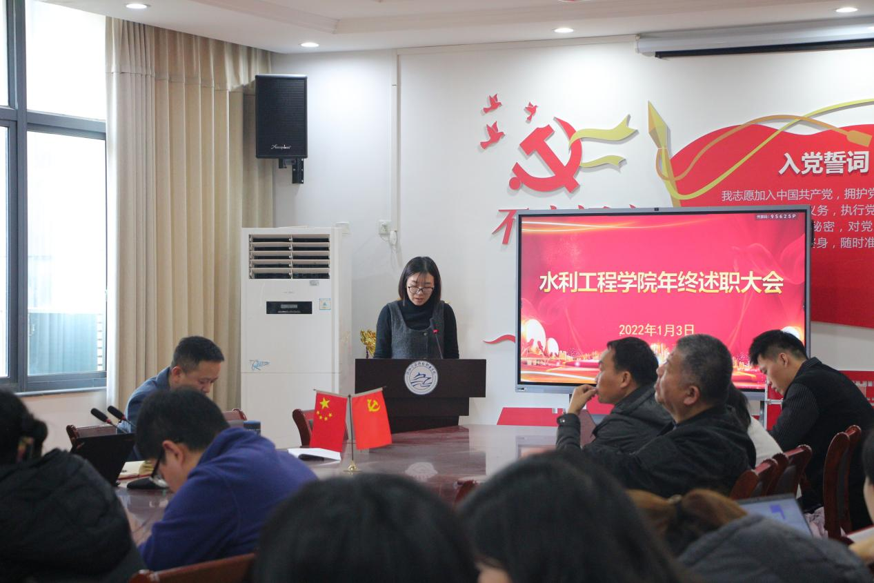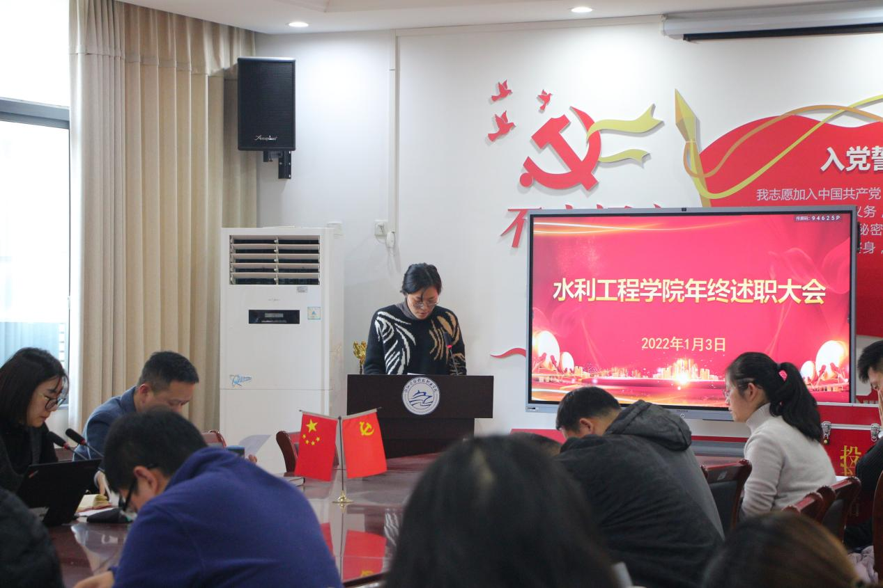 1月3日,水利学院在党员之家召开2021年度年终述职大会,水利学院领导班子、全体教职工参加大会。领导班子成员、专业部主任(专业方向负责人)、行政人员分别对一年工作进行总结述职。