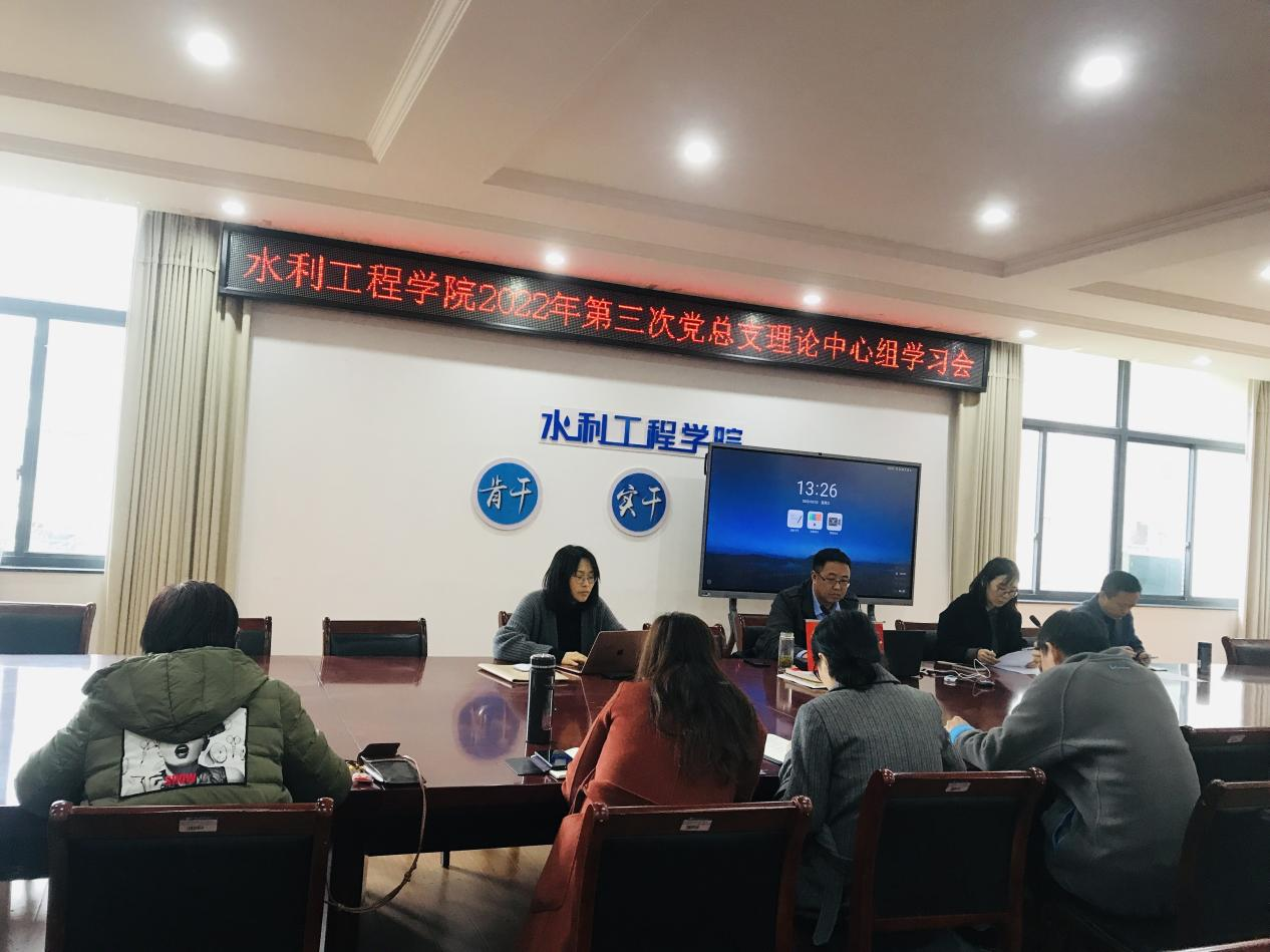 3月25日,水利工程学院召开2022年第三次理论学习中心组学习会暨支部书记工作例会。学院党总支书记叶乐主持学习,学院领导班子、党总支委员、各党支部书记、专业部主任参会。