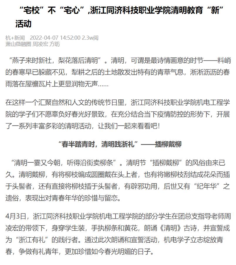 2022年4月7日杭州日报杭+新闻以《“宅校”不“宅心”,日韩欧美福利视频_黑人巨大人精品欧美三区_欧美成人另类人妖_欧美在线精品一区二区三区_欧美一区二区三区性视频_日韩精品欧美视频_性欧美极品xxxx欧美一区二区清明教育“新”活动》为题,报道我校清明教育“新”活动。