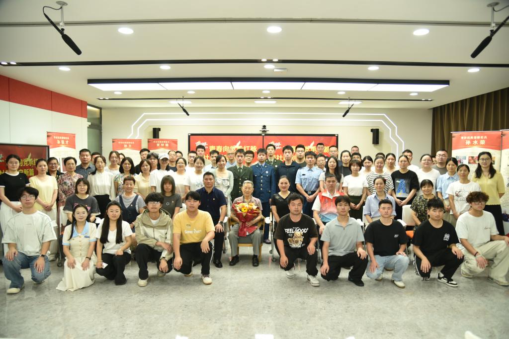 活动现场,88岁高龄的抗美援朝老战士陈汉范用铿锵有力的声音,向在场观众讲述了自己15岁参军报国的经历。当老人回忆起战场上的峥嵘岁月时,现场观众无不为之动容。特别是当陈老深情朗诵自创诗词《老兵吟》时,“十五即从军,甘为一砖固长城”的豪迈誓言、“无愧无憾度今生”的赤诚告白,引发了经久不息的掌声。老战士用生命书写的革命故事,让青年学子们深刻认识到和平的来之不易,也更加坚定了“请党放心,强国有我”的理想信念。活动最后,学生代表向老英雄献上鲜花,全体人员在鲜红的党旗前合影留念,共同记录下这堂生动的思政课。