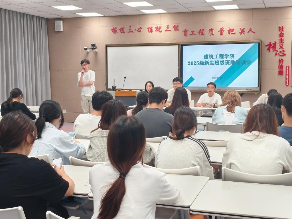 为进一步提升新生班级助理的综合能力,确保2025级新生入学工作顺利开展,建筑工程学院于近日召开了新生班级助理培训会。本次培训会共有7位辅导员、1位教学秘书和全体2025级班助参加。