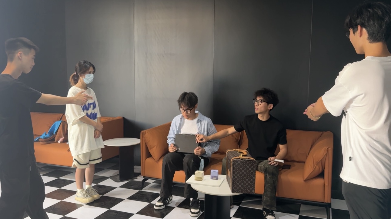 活动筹备阶段,20名实践团成员分为4个创作小组,围绕“提升全民反走私法治意识”目标,结合网络走私案例,从经济犯罪、国门缉私、职场陷阱、社区渗透等维度切入,构思多维度的法治宣传场景:经济犯罪组聚焦网络代购走私与虚拟货币犯罪,国门缉私组还原跨境电商监管科技,职场陷阱组揭露虚假报关操作,社区渗透组警示社区团购走私风险。建德寿昌镇千德影视基地为本次拍摄提供了地铁站、银行、公安局、医院等仿真场景勘景。