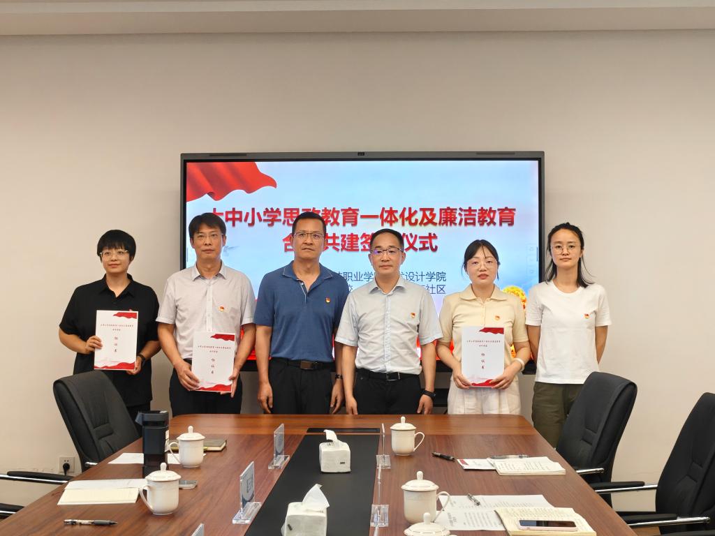 为深入贯彻落实习近平总书记关于思政课建设的重要指示批示精神,推动大中小学思政教育一体化建设,7月2日,学校艺术设计学院联合萧山区钱江学校、萧山区宁围街道钱江社区举行“大中小学思政教育一体化”共建基地签约和授牌仪式,标志着三方在构建“纵向贯通、横向协同”的大思政教育体系上迈出新的一步,为培养担当民族复兴大任的时代新人注入新动能。学校党委委员、副校长姜伟,学院党总支书记金璐、副书记徐玉凤、教师代表王婷,萧山区钱江学校执行校长吴恒,副校长鲁伟锋、魏少锋,萧山区宁围街道钱江社区党总支副书记葛玉婷、总支委员冯国琴等参加。