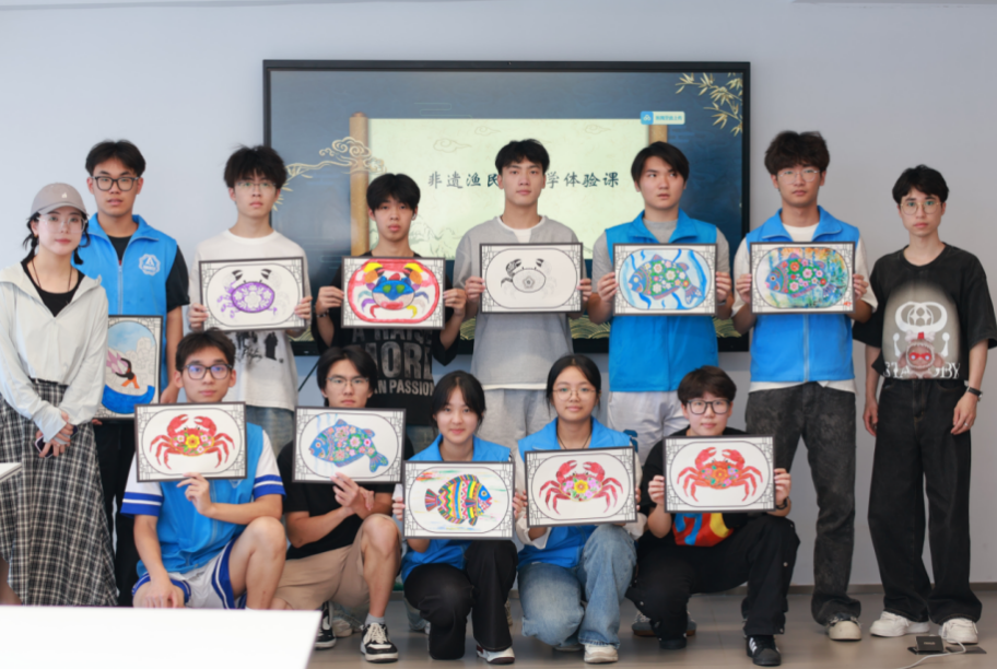 在东沙村文化礼堂,实践团以海岛生活为素材,创作渔民画系列作品。通过裂变式笔触、海霞红渐变色彩等技法,将渔民画元素融入文创产品设计,设计渔民画文创产品和渔民画宣传海报,为非遗活化提供创新实践样本。