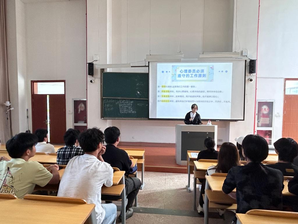 为加强学院心理健康教育工作队伍建设,提升班级心理委员的专业素养与实际工作能力,筑牢校园心理健康防护网络,建工学院于10月15在C208举办了以“守望相助,携手同行”为主题的心理委员专题培训会。本次培训聚焦心理委员的工作原则、核心职责以及异常心理和行为的识别与处理,为全体心理委员进行了一次系统而实用的“充电赋能”。