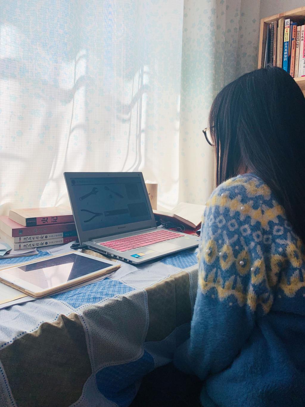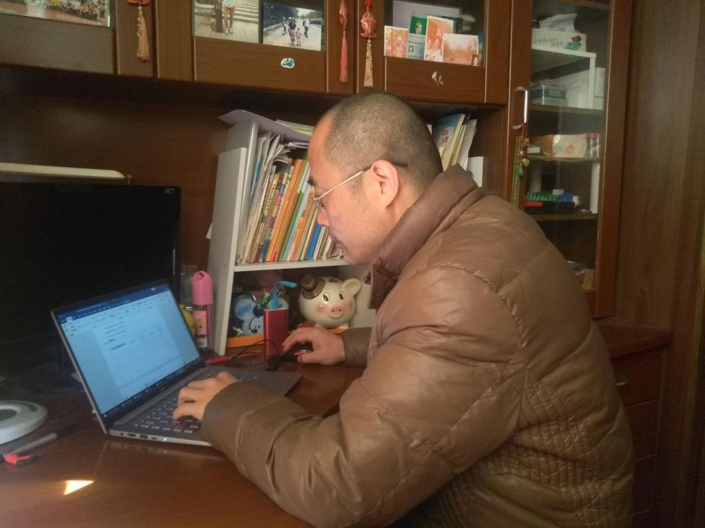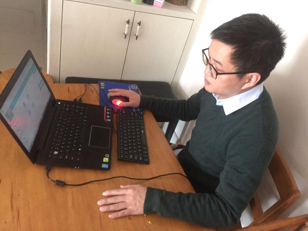 李维俊老师,机电专业专任教师,民主党派,70后。来自企业一线的新老师,面对疫情的突发情况,首次接触网络直播教学。为了更好更生动的将企业典型案例用网络直播的形式呈现出来,大部分时间在书房备课。