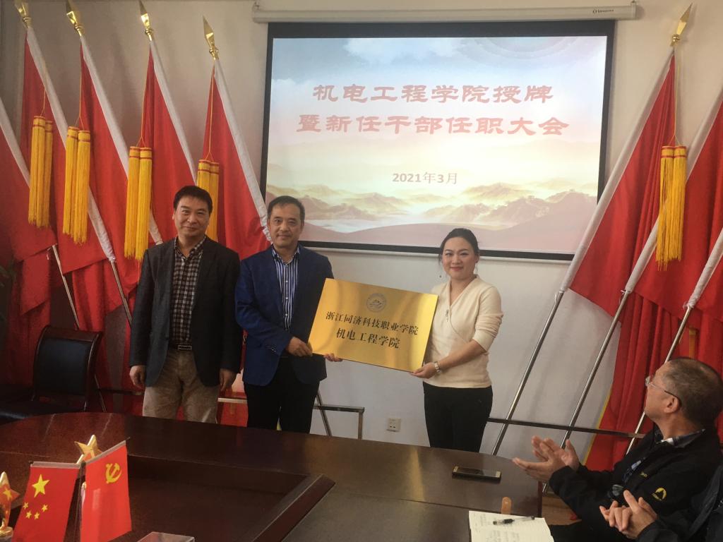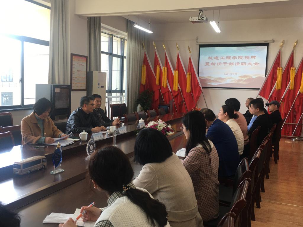 3月26日下午,机电工程学院新任干部任职大会暨授牌仪式在钱江楼513召开。学校党委副书记吴宏平,副校长朱兆平,党委委员、组织部长吴玲洪,机电工程学院领导班子、全体教职工参加会议。会议由学校党委副书记吴宏平主持。