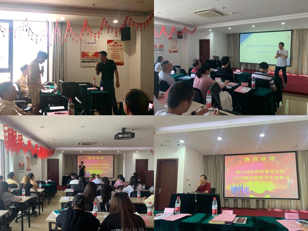 首先,企业方安排学生参观公司,常务副总经理袁波对公司基本情况、发展历程、企业文化、公司业务等方面进行初步讲解,让学生们对造价企业有了进一步的认识;接着,总工程师傅龙财为学生们带来一节别开生动的职业规划课,也与同学生们进行了面对面交流并解答了就业相关问题,建议同学做好职业规划,为就业做好提前准备;随后,蒋晓冬书记进行讲话,她对学生提出“心中有梦想、行动有步伐”的要求;最后,杭州市建设工程造价管理协会秘书长程建勇作出本次活动总结,要求造价专业的学生必须认认真真做人、踏踏实实做事。