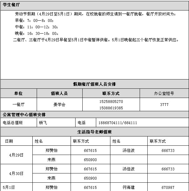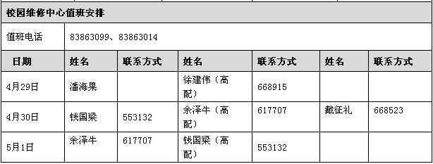 2012年劳动节后勤服务保障一览表