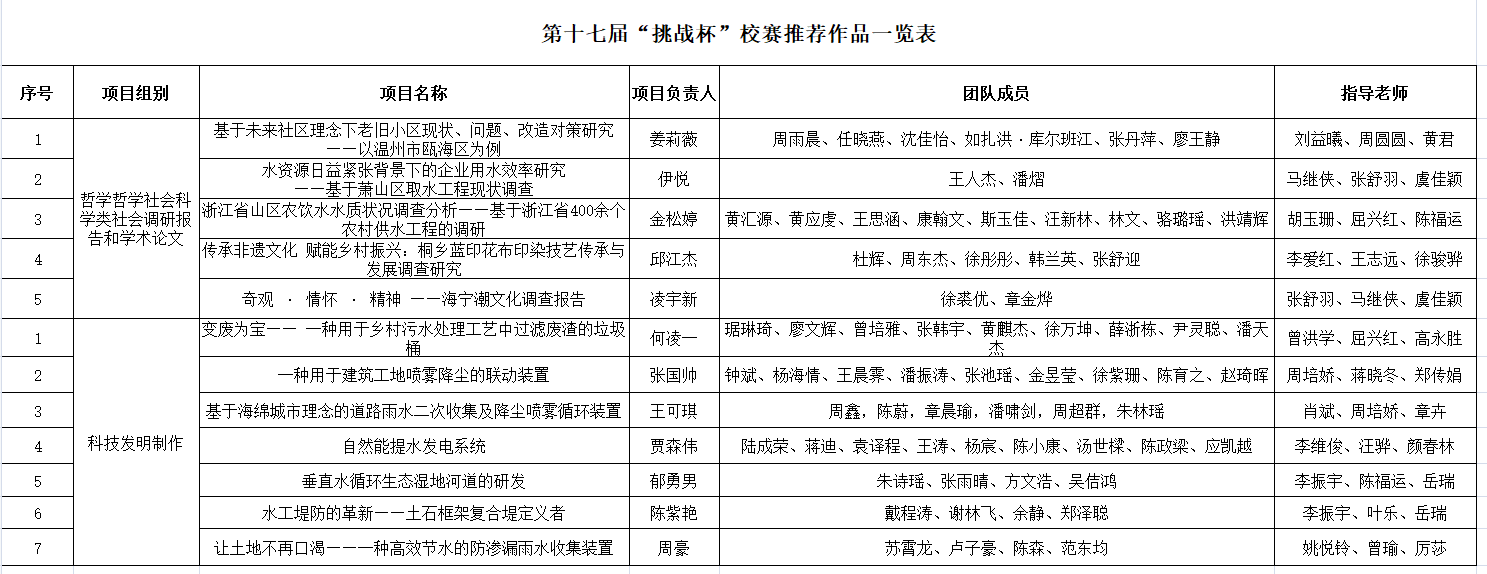 2021年浙江省第十七届“挑战杯”大学生课外学术科技作品竞赛推荐项目名单的公示