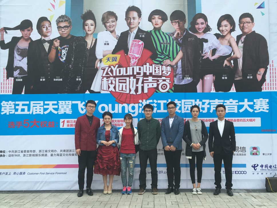 火红的五月,激昂的青春,年轻的战场。5月22日,伴随着初夏的微风,我院五名参赛学生怀兴奋之情于湖州师范学院参加“第五届天翼飞Young浙江校园好声音”大赛。